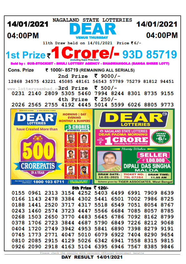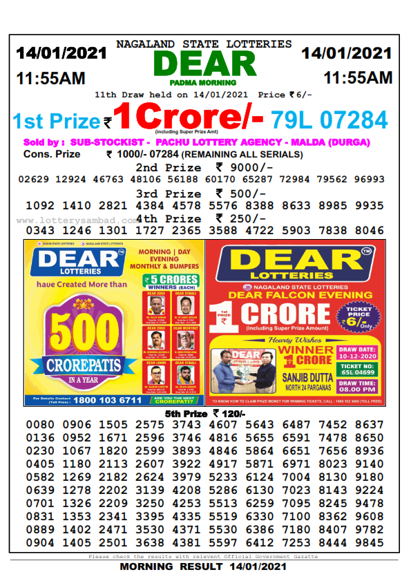 READ: Lottery Sambad Nagaland Result 8 PM 14.1.2021 Dear Falcon Evening