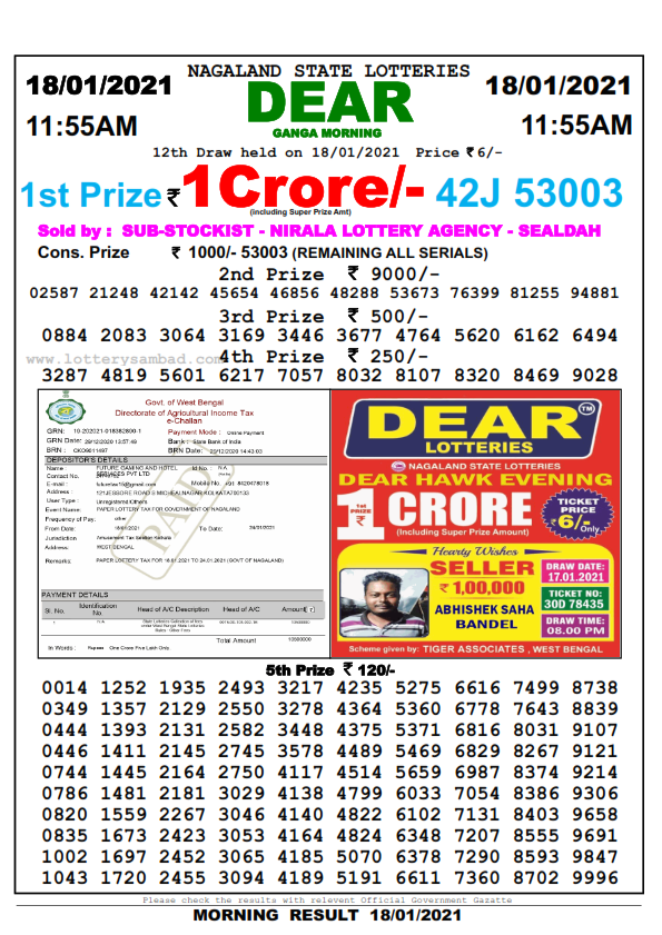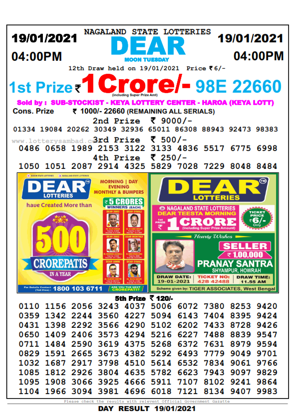 Dhankesari lottery result of 10.1.2021 now published. Sikkim and Nagaland state lotteries draw on 11:55 am, 4 am and 8 pm results are on the live dhankesari website. The lottery is played in 13 states in India. It’s playing in every village every city in these 13 states. So that its popularity day by day. Lottery in west Bengal is selling like hotcake. Every day dhankesari tickets are being out of stock.