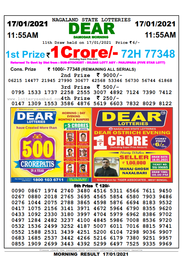 READ NOW: Today Lottery Sambad 9.1.2021 Nagaland Winning Results