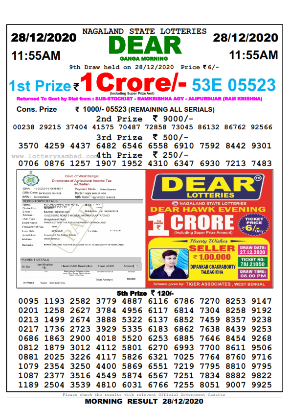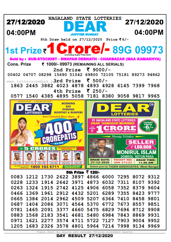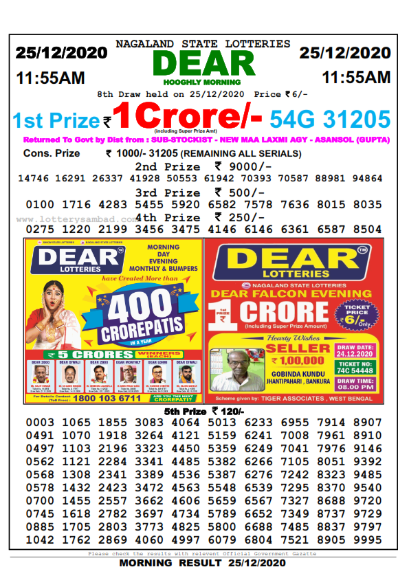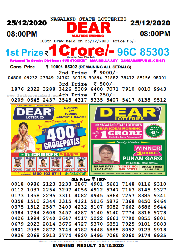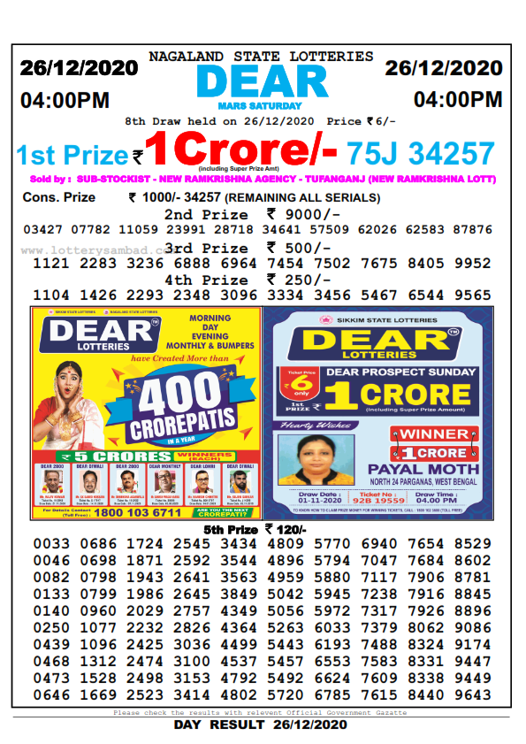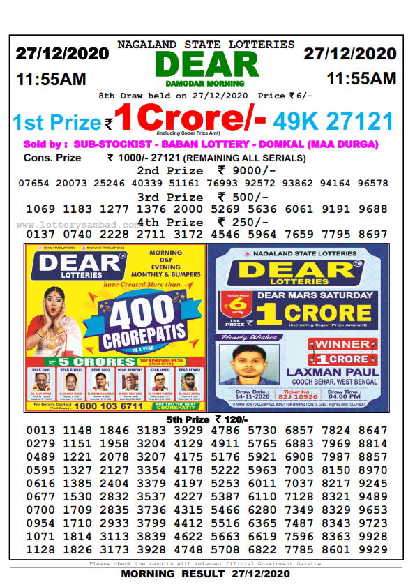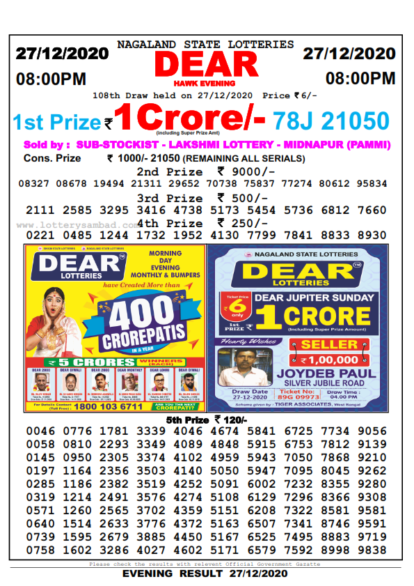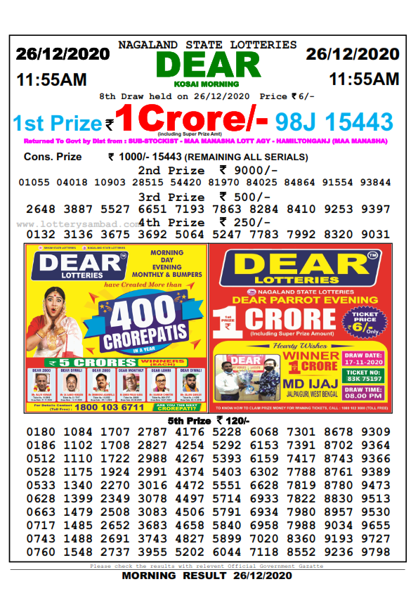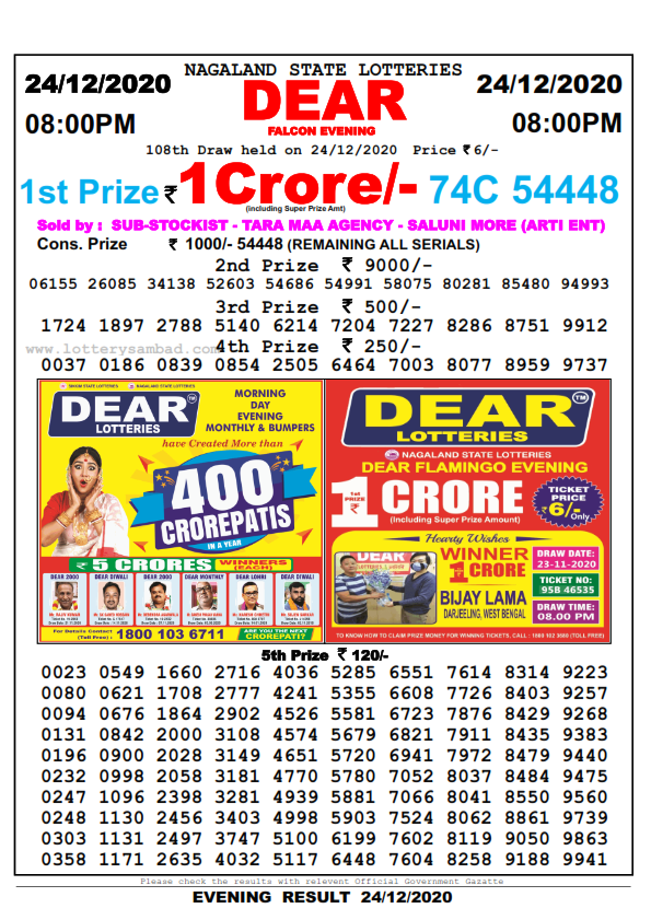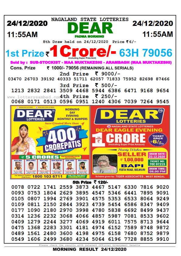 Read Also: Lottery Sambad Sikkim 23.12.2020 11:55 AM Dear Result