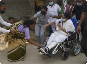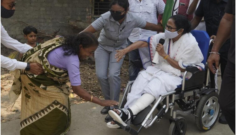 Trinamool Congress chief and West Bengal chief minister Mamata Banerjee on Monday led an 8-km rally in Nandigram of East Midnapore. She was on a wheelchair, and she interacted with people along the way from Khudiram More of Nandigram and ended her roadshow at Thakurchowk, where she then held a meeting. Banerjee is the Trinamool Congress candidate from Nandigram Assembly constituency, fighting against her once close aide Suvendu Adhikari, now the Bharatiya Janata Party (BJP) candidate.