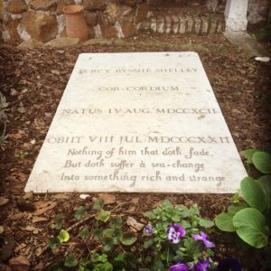 Somewhere here, next to the Pyramid of Cestius built in 30 BC, is the Cimitero Acattolico, or the Non-Catholic cemetery. At a quiet corner of this cemetery is a gravestone, strewn with violets and daisies, that reads: